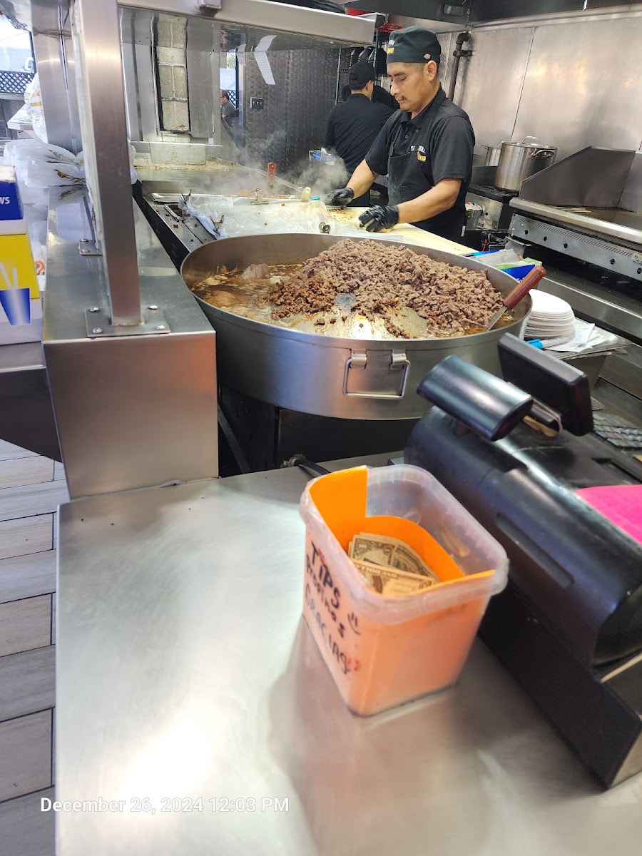 They only accept cash, if you don’t have any, they have an ATM machine there. Tacos are priced good and good and they are conveniently open until very late hours! This is a quick stop, eat and go location, not the type of place you eat and hangout at. Don’t expect the tables to be clean.