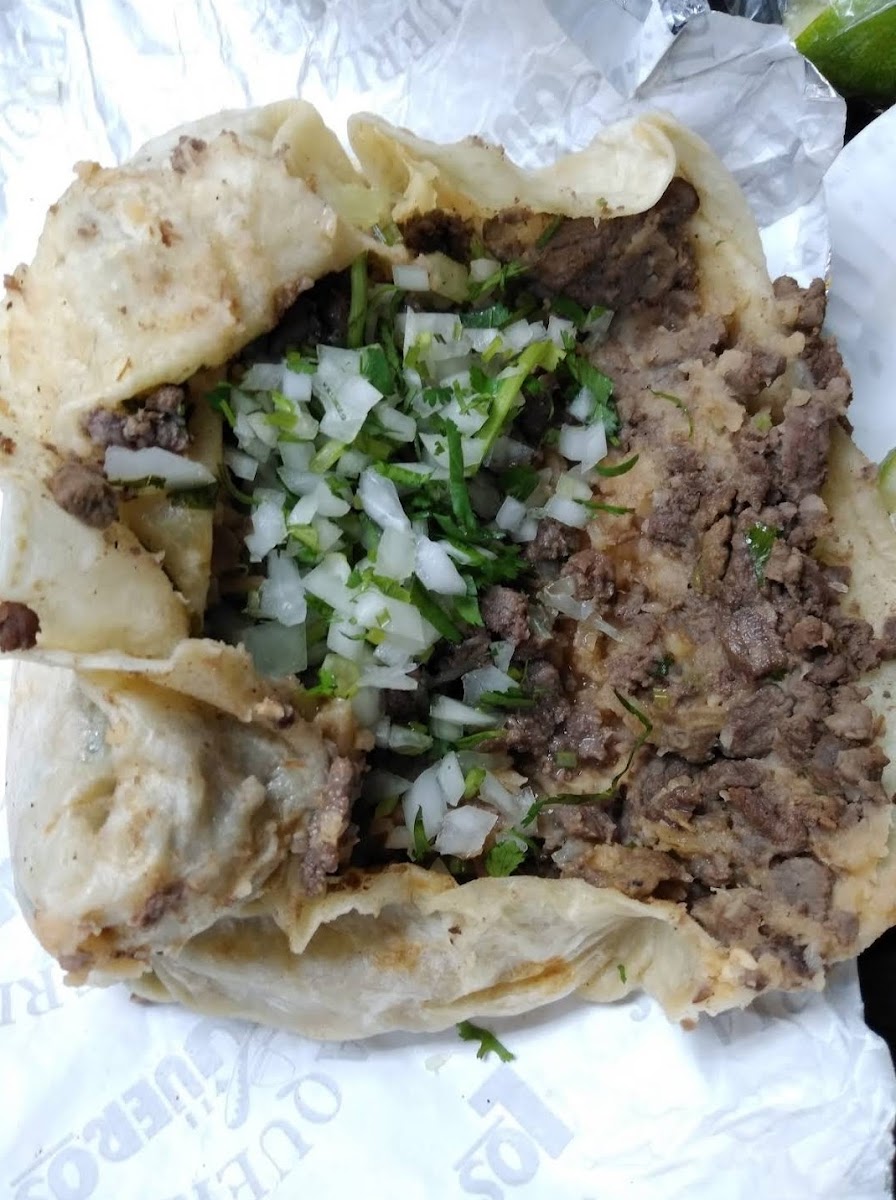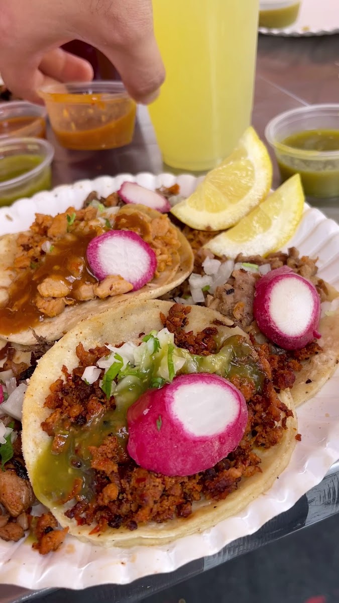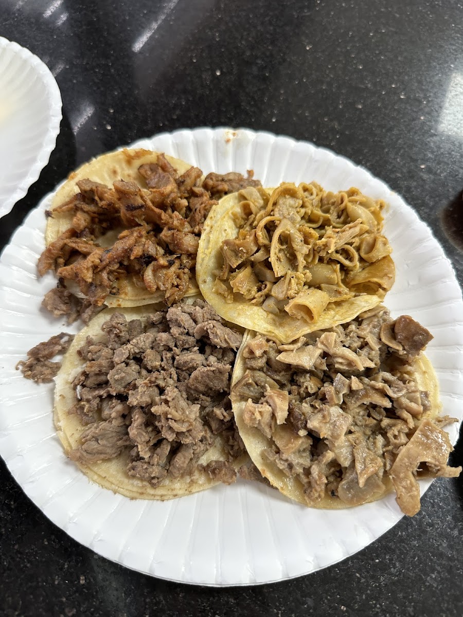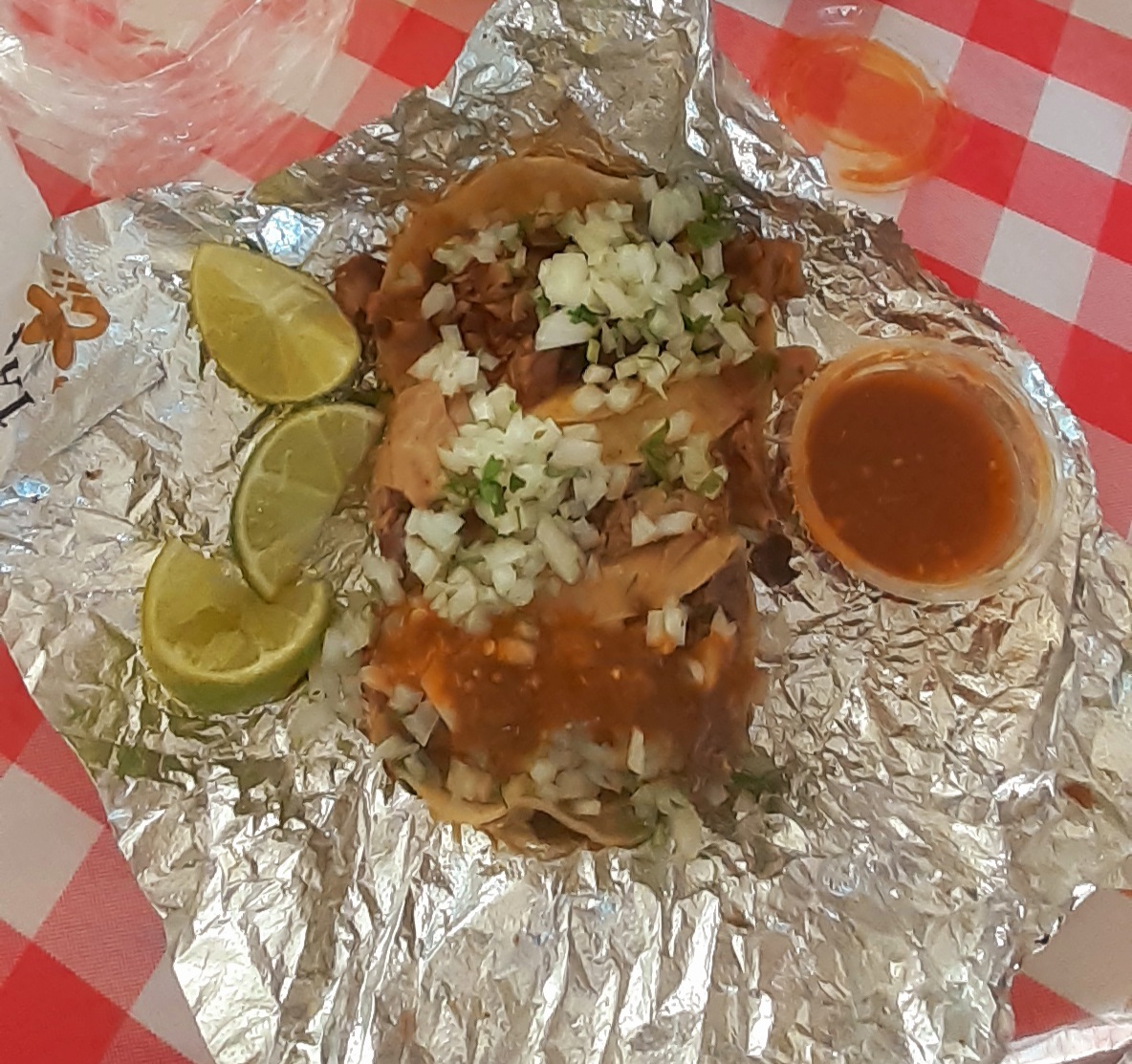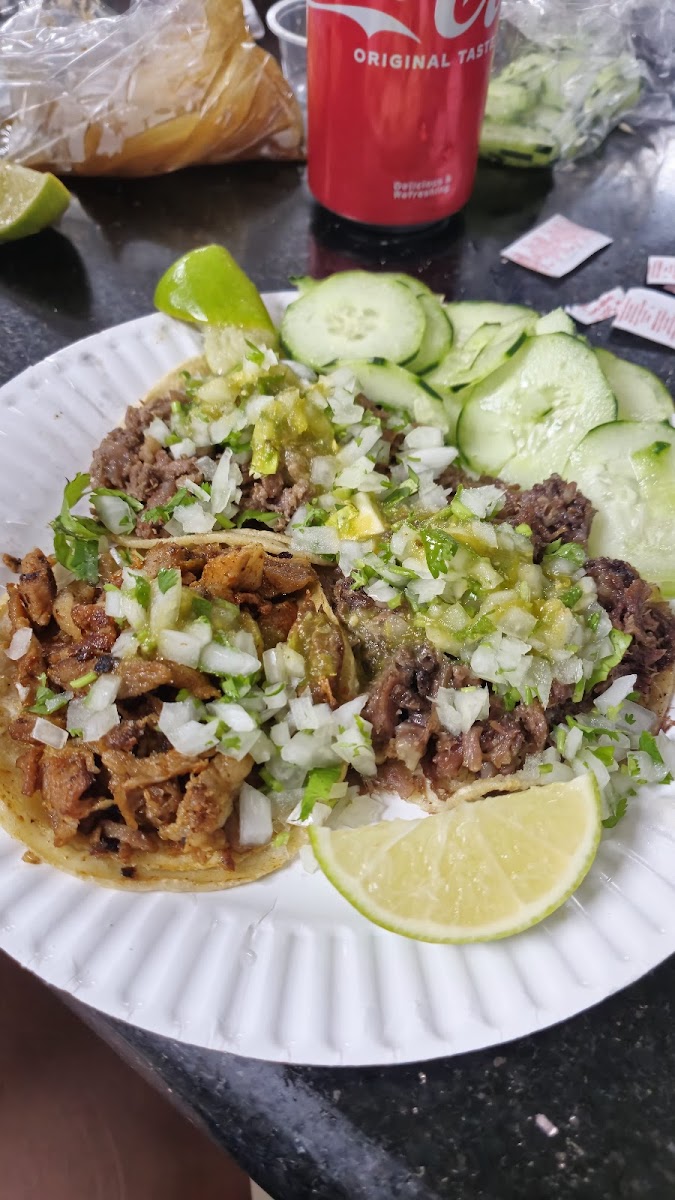 Best Tacos I’ve had in a long time. Regular tacos are $1.80 and Birria tacos are $3.50. Salsas Verde and Roma, and toppings are set up in buffet style and you can serve yourself. Tacos could have been a bit more crunchy. Will definetly return.